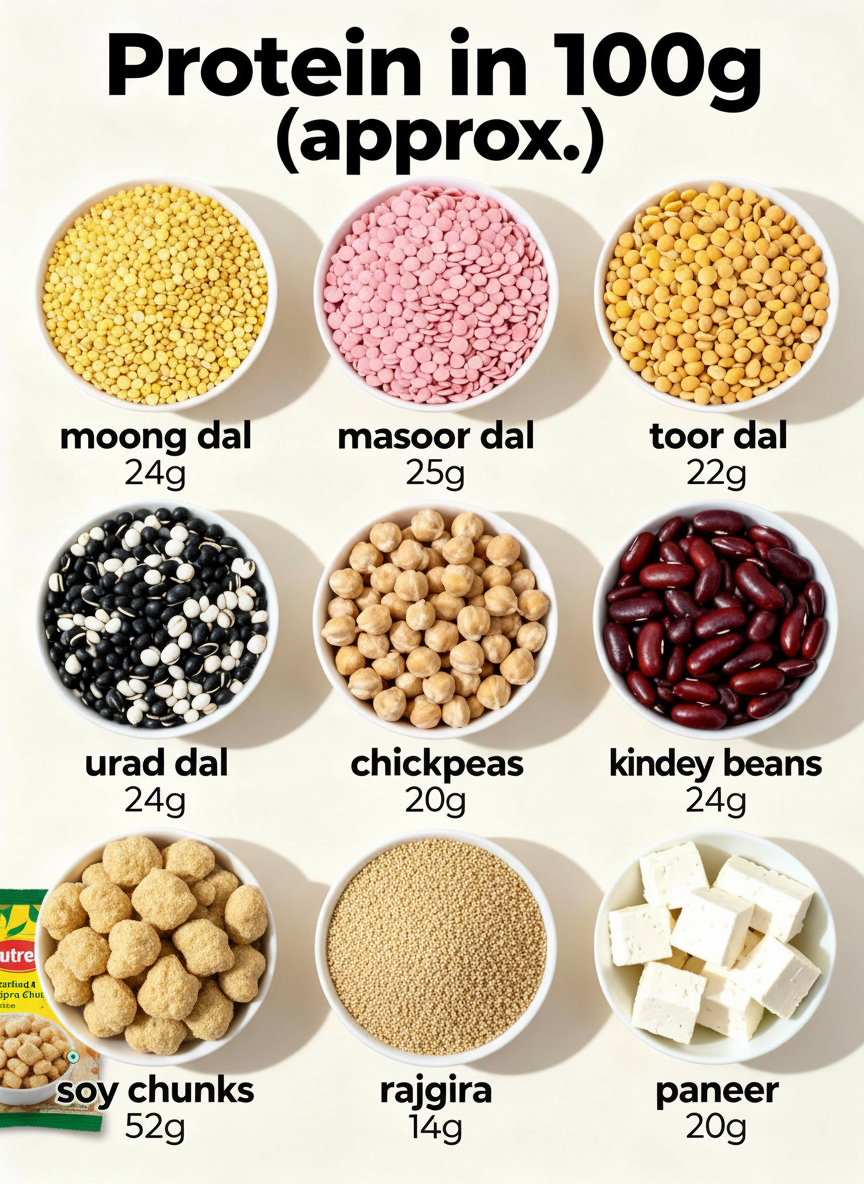 - मसूर डाळ: १०० ग्रॅममध्ये २५ ग्रॅम