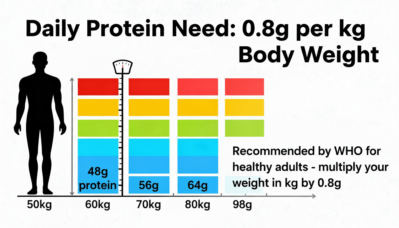 वय, वजन आणि शारीरिक हालचालीवर प्रोटीनची गरज ठरते. साधारणपणे दर किलोला ०.८ ग्राम्स प्रोटीनची आवश्यकता असते. उदाहरणार्थ, तुमचे वजन जर ५० किलो असेल तर तुम्हाला (५० x ०.८=४०) ४० ग्रॅम्सची गरज असते.