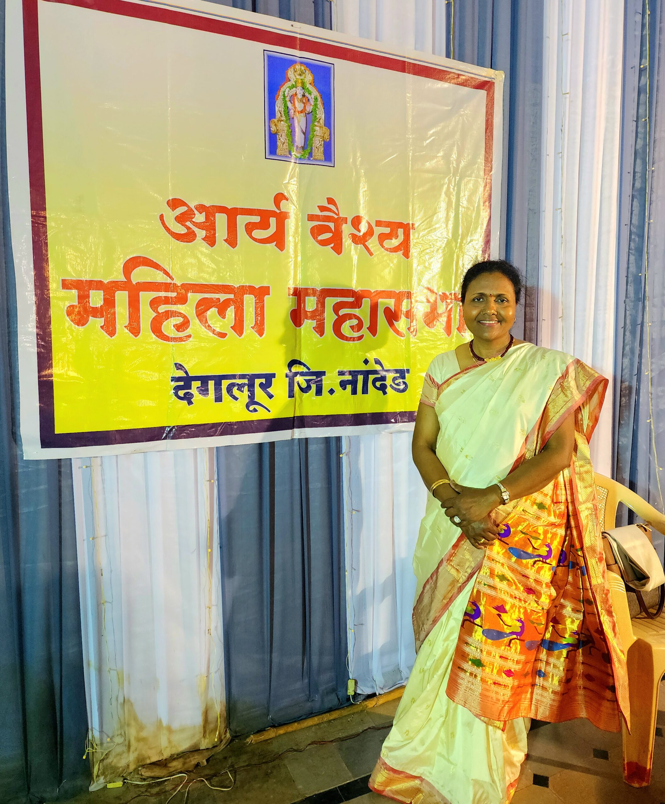 24 तारखेला देगलूरला जायचे होते. देगलूरला जाण्याआधी माझ्या मैत्रिणीची (सुषमाची) बहीण, संध्याताई, कडे भेट दिली. आम्ही देगलूरला सत्यवती वहिनी, ज्या माझ्या मोठ्या वहिनी आहेत, त्यांच्याकडे गेलो. भाचा राकेश, त्याची बायको स्वपना आणि मुली आराध्या-आरोही असे सगळ्यांनी आमचे स्वागत केले. वहिनींनी भाकर तुकडा ओवाळून टाकले. चांदीच्या ताट-वाटीत माझ्या आवडीचे पदार्थ करून वाढले. राकेशने माझ्या फॅमिलीसाठी प्रत्येकाचे नाव लिहिलेली/कोरलेली किचेन्स दिली. त्याचदिवशी म्हणजे २४ सप्टेंबरला चार वाजता देगलूरच्या नगरेश्वर मंदिरामध्ये आर्य वैश्य महिला मंडळातर्फे माझा सत्कार आणि भाषण ठेवण्यात आले होते.