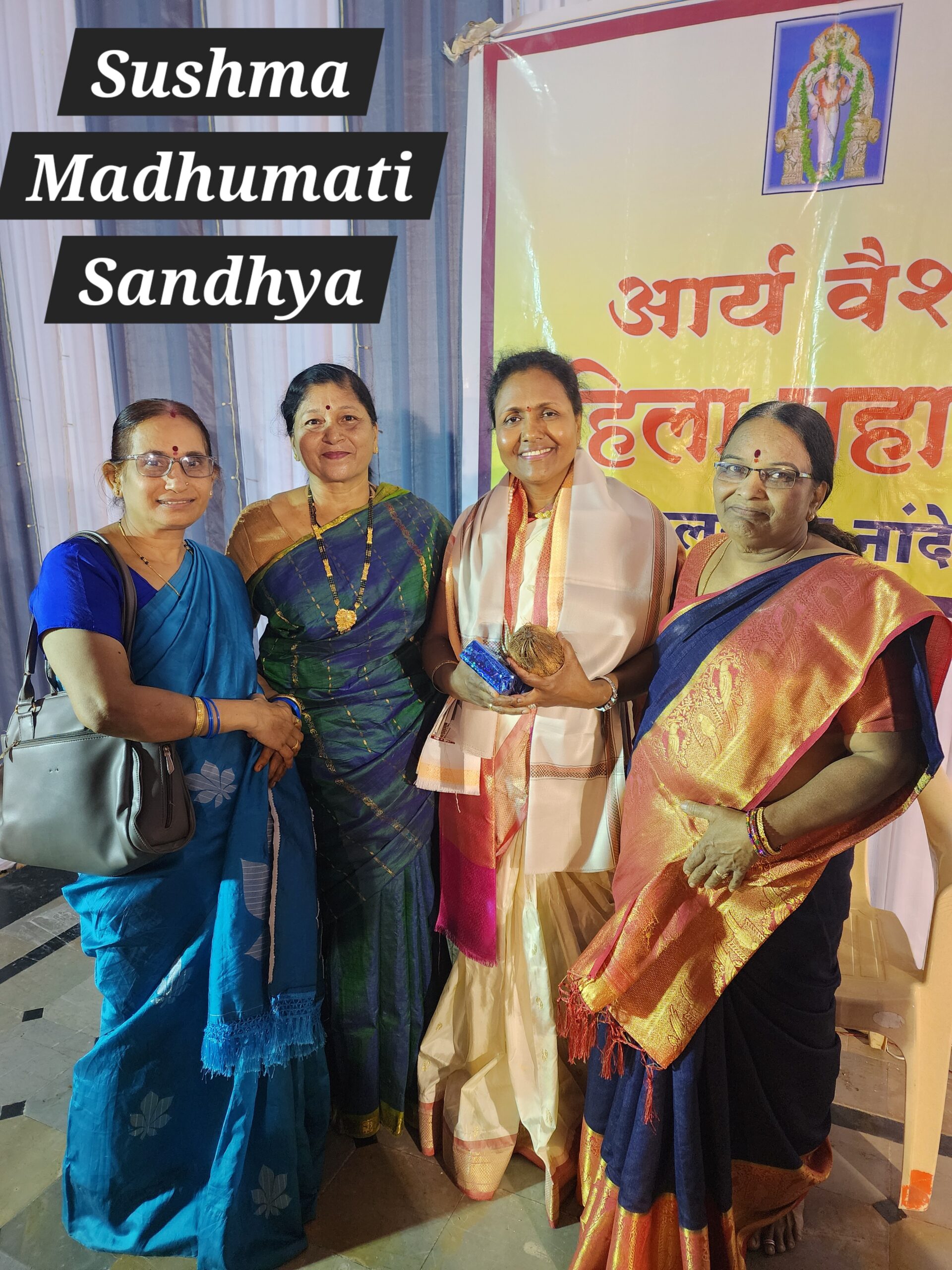 माझ्या तीन गोड मैत्रिणी, सुषमा-मधुमती-संध्या तिथे आल्या. त्या तिघींनी पण माझा सत्कार केला. गिफ्ट दिले.