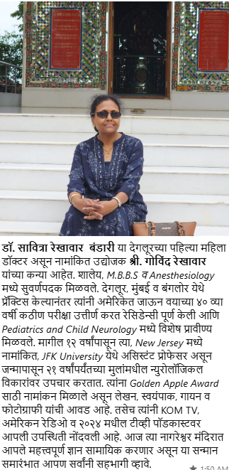 त्यानंतर शाल-बांगड्या-श्रीफळ आणि ओटी भरून देवीच्या सानिध्यात माझा सत्कार करण्यात आला. बऱ्याच जणांनी येऊन मेडिकल प्रश्न विचारले. वेळेअभावी इच्छा असूनही सगळ्यांना मदत करता आली नाही.