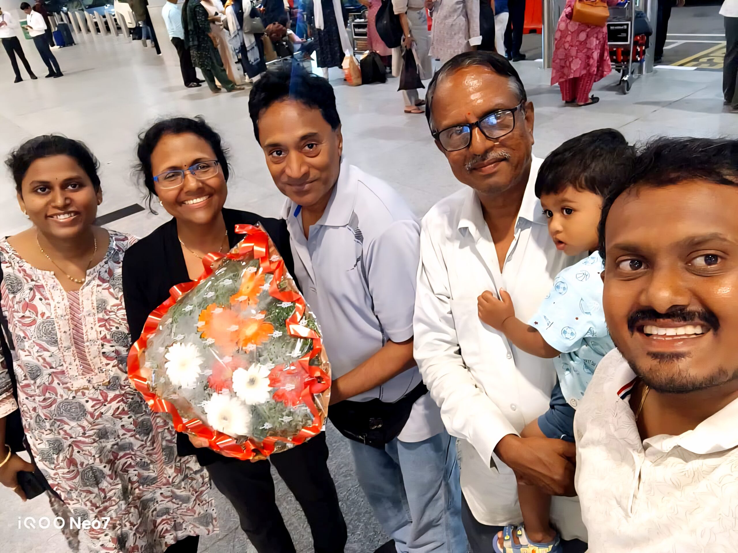 आम्ही ठरवलं की हैदराबादला भावाकडे जायचं. त्यांना भेटून, तिथे थोडीशी शॉपिंग करून मग देगलूर ला जायचं. आम्हाला न्यूयॉर्कच्या एअरपोर्टला जायचे होते. योगायोगाने माझा मुलगा १२ सप्टेंबरला फ्री असल्यामुळे त्याने आम्हाला एअरपोर्टला सोडले. तिथून आबूधाबीला जायचे होते आणि मग तिथून हैद्राबादला. पूर्ण प्रवासात झोप आली नाही. १७-१८ तासांचा प्रवास करून आम्ही १३ सप्टेंबरला इंडियात पोहोचलो. हैदराबादला एअरपोर्टवर माझा भाऊ कृष्णा, भाचा पियुष, पियुषची बायको सौजन्या आणि त्यांचा मुलगा अद्वैत असे सगळे बुके घेऊन आमचे स्वागत करायला आले. खूप वर्षांनी गेल्यानंतर भरपूर गप्पा झाल्या. मग दोन अडीच दिवस भरपूर शॉपिंग केली. माझी भाची ऋता पण आली होती. तिची शॉपिंगसाठी खूप मदत झाली. हैदराबादच्या फेमस शरत सिटी मॉलमध्ये आम्ही सगळ्यांनी खूप मजेत दिवस घालवला.