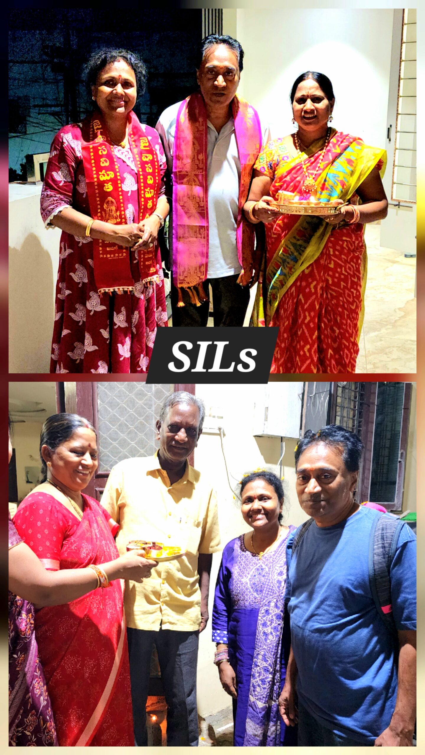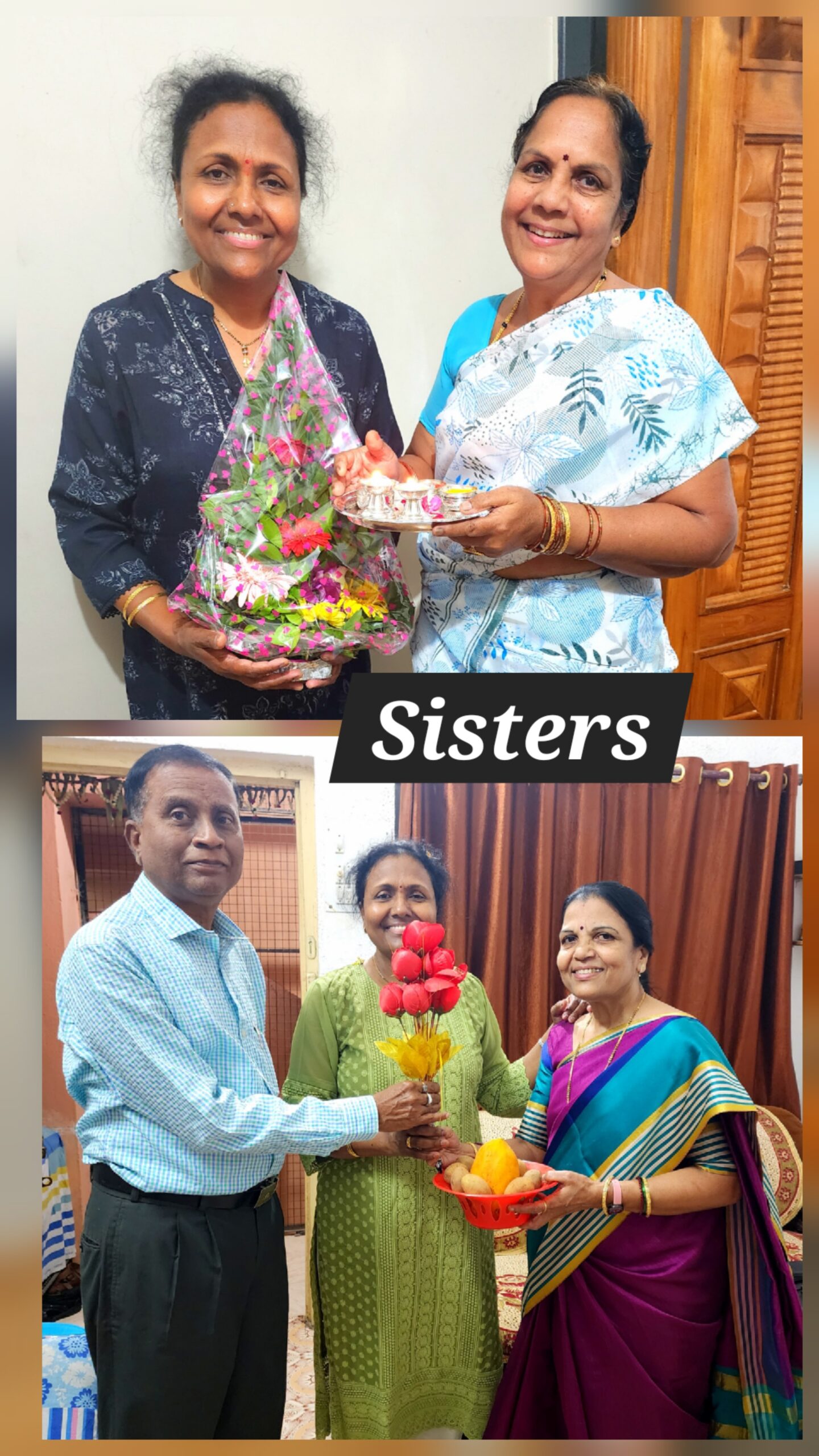 त्यानंतर इंदू मावशी वट्टमवारकडे गेले. त्यांना भेटून मग चुलत बहिणीकडे म्हणजे सिंधुताई कडे गेले. तिच्या फॅमिलीला भेटून छान वाटले. तिथून माझे दोन्ही लहान भाऊ आणि भावजया सगळे मिळून आम्ही मोठ्या वहिनींकडे गेलो. सीताफळे खात, गप्पा-जोक्स मधे वेळ कसा गेला कळलेच नाही. दिनेश भाऊंनी अतिशय सुंदर अशी कृष्णाची मूर्ती माझ्यासाठी पाठवली. 25 तारखेला मोठ्या वहिनी, राकेश, स्वपना, आराध्या आरोही असा सगळ्यांचा निरोप घेऊन अशोकदादा-आशावहिनी नारलावारकडे गेलो. त्यांनी आमचे जोरदार स्वागत केले. शाल पांघरून, हार घालून, आहेर करून माझा सत्कार केला. तिथून डॉक्टर भावाच्या घरी आले. मुक्ताकडून कच्च दूध आलेलं होतं. मग खरवस एन्जॉय केला. 27 तारखेला सकाळी लहान भावाकडे (लक्ष्मण कडे) गेले. तिथे संध्याने जेवणाची उत्तम तयारी करून ठेवलेली होती. आमची सगळ्यांची जेवणे झाली. पाऊस पडत होता आणि तिथून आम्हाला निजामाबादला जायचे होते. सगळ्यांचा निरोप घेऊन निघेनिघेपर्यंत संध्याकाळचे सात वाजले. पावसामुळे सगळ्यांचा आग्रह होता की आम्ही दुसऱ्या दिवशी सकाळी जावे. रात्रीचा प्रवास टाळावा. पण आम्ही सगळ्यांना हमी दिली की रस्त्यात जर काही वाटले तर आम्ही परत येऊ. आम्ही निघालो आणि सुखरूप पणे निजामबादला साडेनऊला पोहोचलो. आम्ही तिकडे पोहोचलो आणि इकडे देगलूरला ढगफुटी झाली आणि तीन दिवसासाठी रेड अलर्ट जाहीर झाला. आम्हाला दैवाची साथ होती. आम्हाला कुठेही अडचण आली नाही. मी जिथे जाईन तिथे सगळ्यांनी माझ्या आवडी-निवडी लक्षात ठेवून मला भरपूर खाऊ-पिऊ घातले. कोणी काय खाऊ घातले ह्याबद्दल इथे सांगणे शक्य नाही.