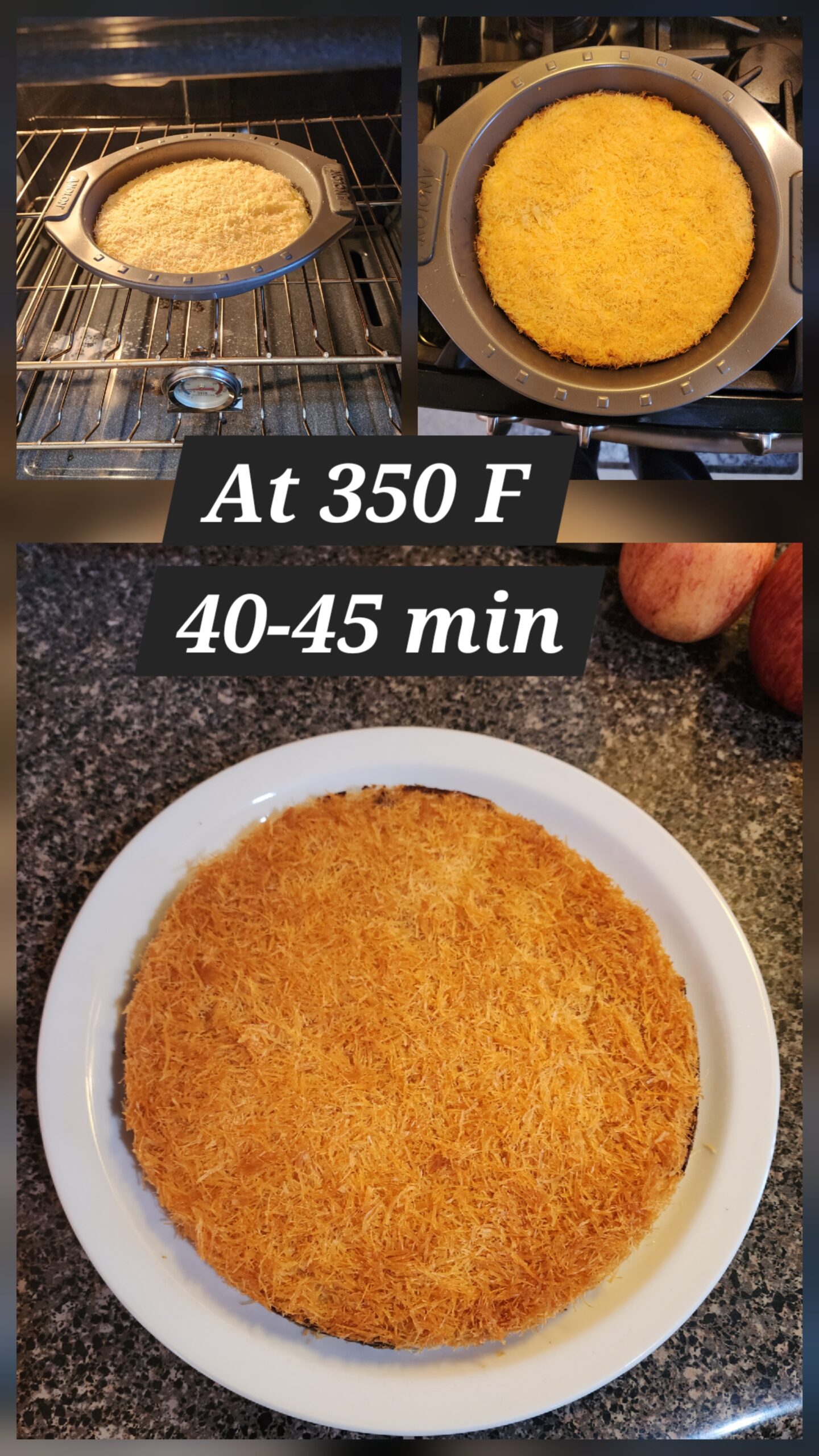 - Transfer the baked kunafa to another plate