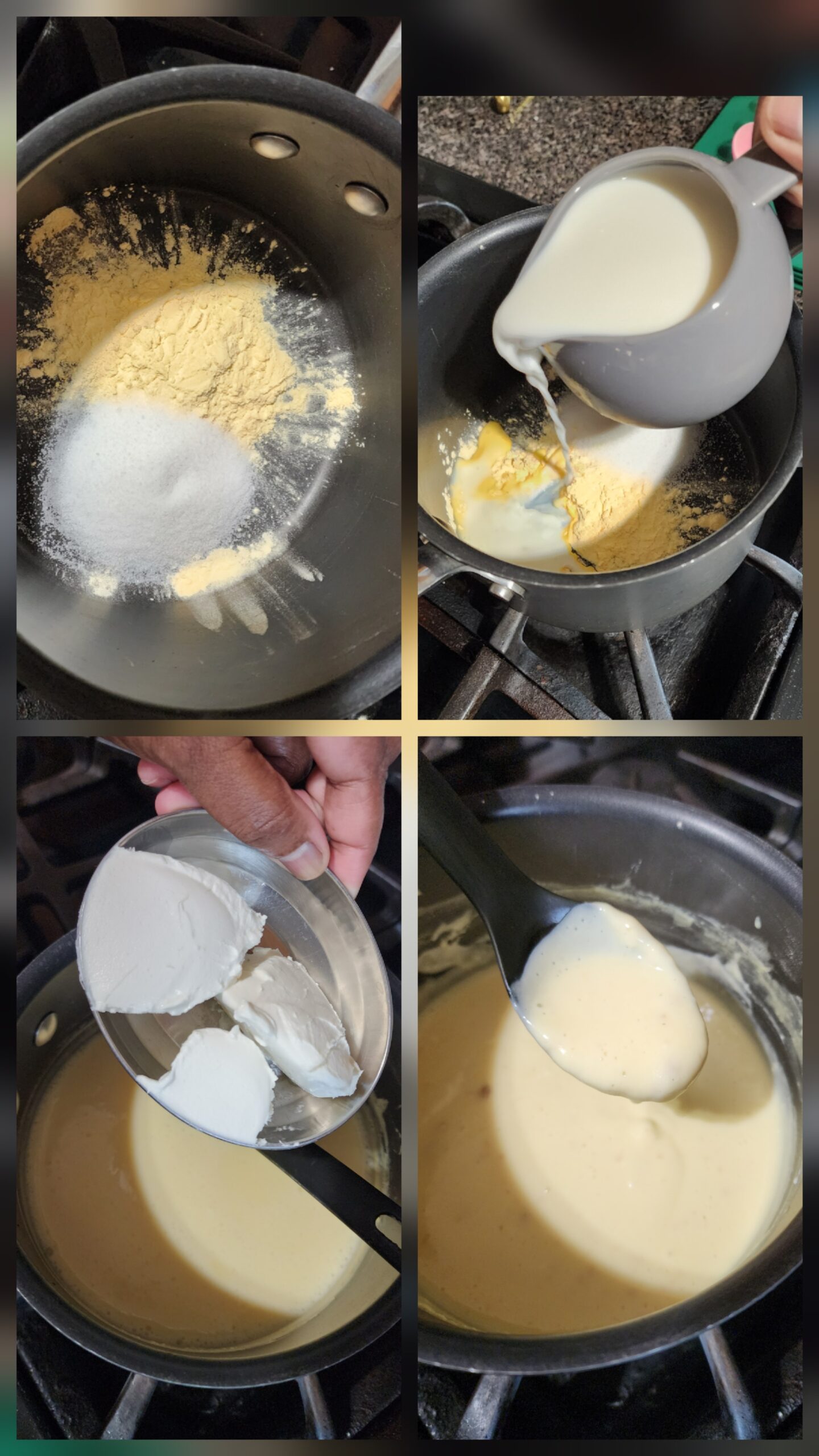 - Once it starts becoming thick, add cream cheese
