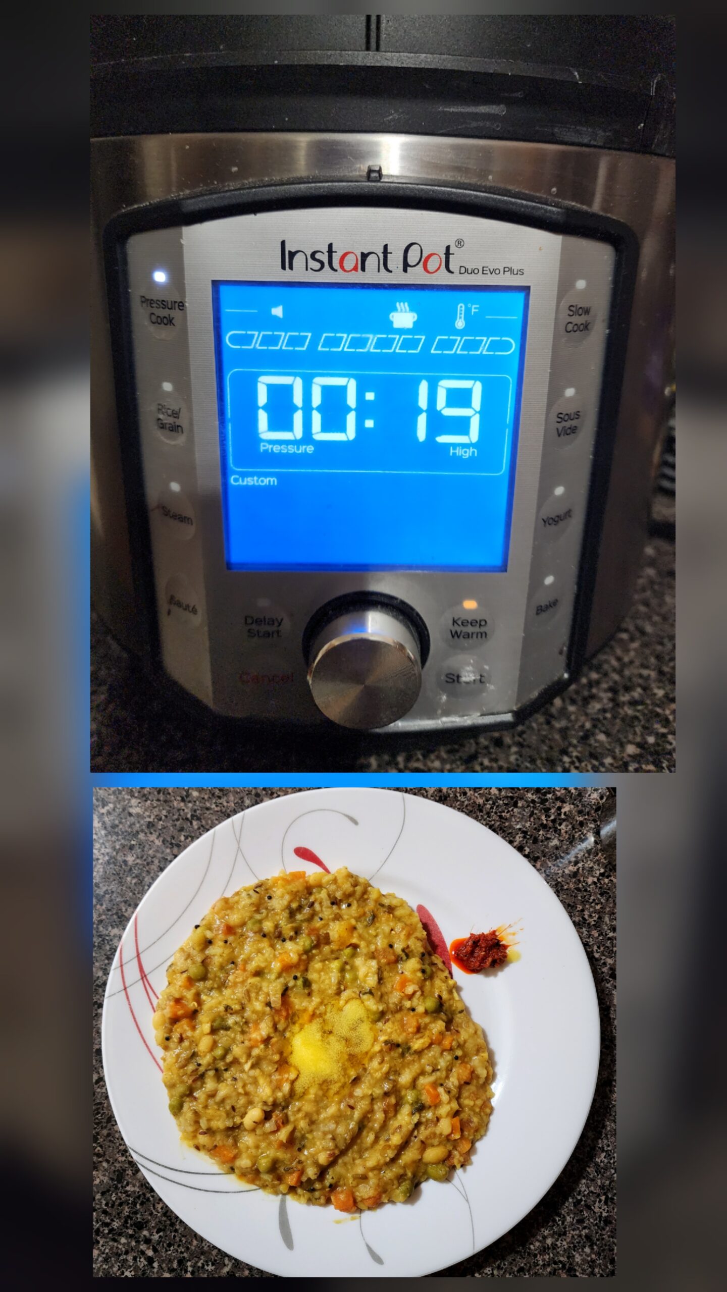 - 1½ cup khichdi mix (rice + split moong dal with skin)