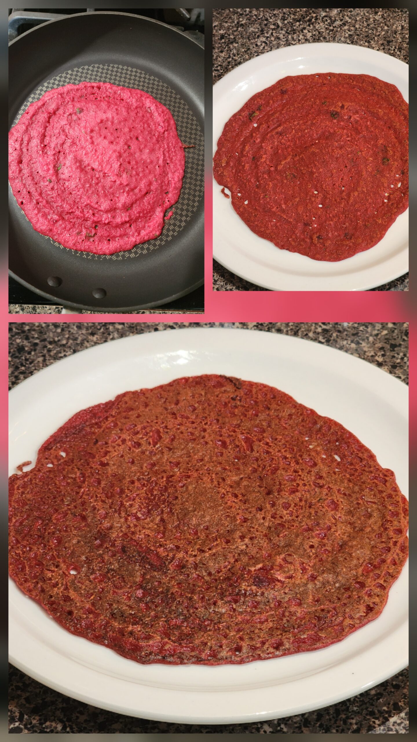 This is the recipe of instant dose. This dosa is not only tasty and nutritious, but looks pretty too 😊 The main ingredients are oats and beetroot.